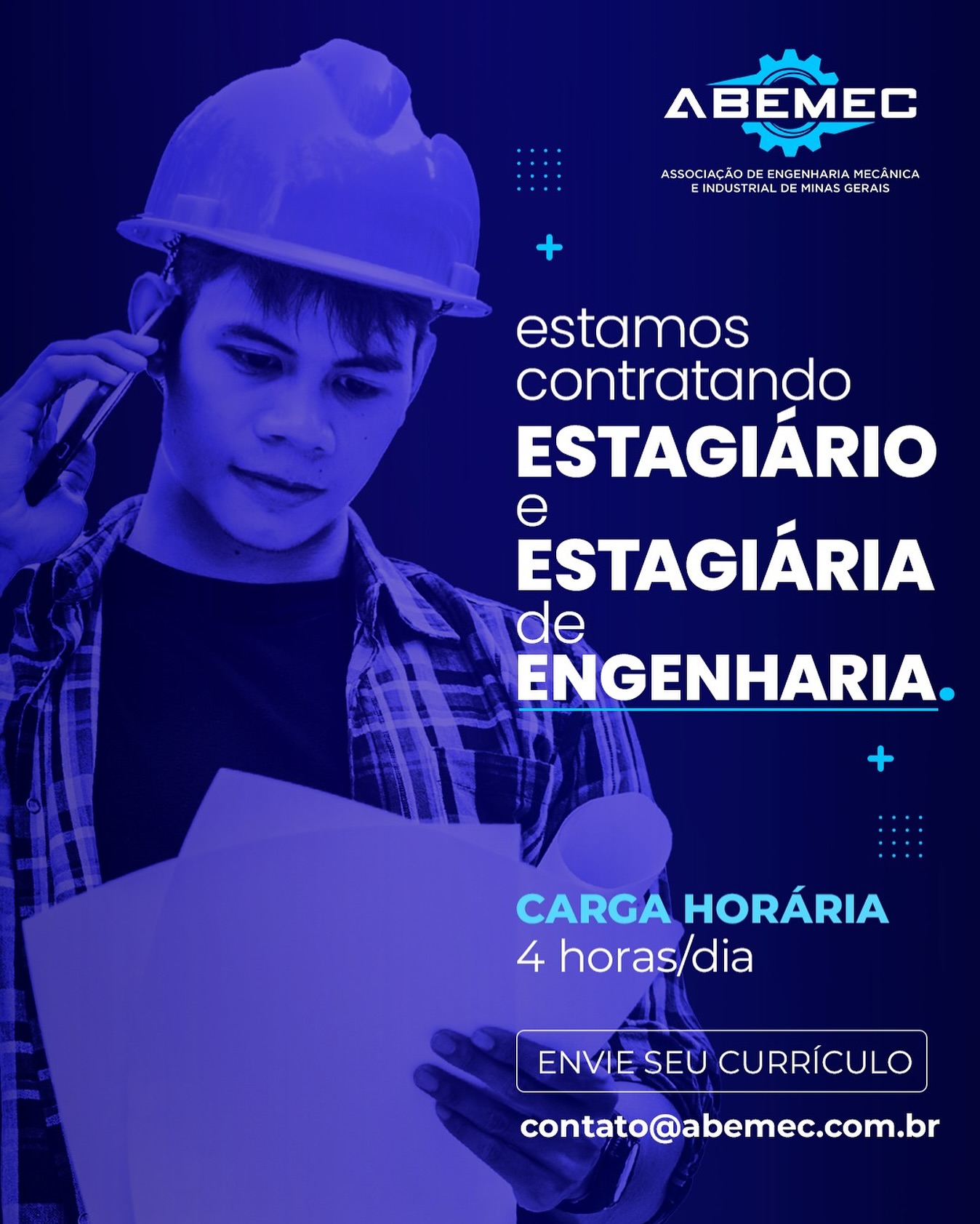 ‍♀️🏼‍♂️ A ABEMEC-MG está contratando estagiário de engenharia!⚙️ Se você está no 4° período do curso de Engenharia Mecânica, de Produção, Industrial, Mecatrônica, Aeronáutica, Naval, Automobilística, etc, e quer a experiência de atuar numa instituição com mais de 30 anos de existência e várias parcerias na sociedade; não perca a oportunidade!  Desenvolva seu currículo sendo estudante, ao realizar várias atividades que o preparam para o mercado profissional.  Seja do nosso time, seja ABEMEC-MG! Envie o seu currículo: contato@abemec.com.br#Vaga #Estágio #Engenharia #ABEMECMG