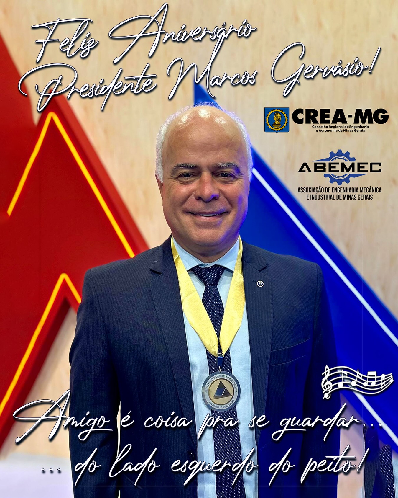 🍾Em 2024 você se tornou um marco na história do Crea-MG e da Abemec-MG ao iniciar tua gestão como Presidente do Crea-MG e se tornando o representante dos mais de 200 mil profissionais das engenharias, agronomia e geociências de Minas Gerais.⚙️E essa tua conquista se tornou uma enorme honra para nós da Abemec-MG, já que a amizade tua com todos os diretores é de longa data. É teu trabalho incansável pela valorização da Engenharia que demonstra o quão foi acertada a escolha para você seja o nosso representante mor da Engenharia em Minas Gerais e no Brasil.Parabéns amigo! Que hoje seja um dia repleto de manifestações de carinho de muitas pessoas nesse Brasil a fora que tanto te querem bem! ️‍♂️️Felicidades hoje e sempre! 🥳🥂