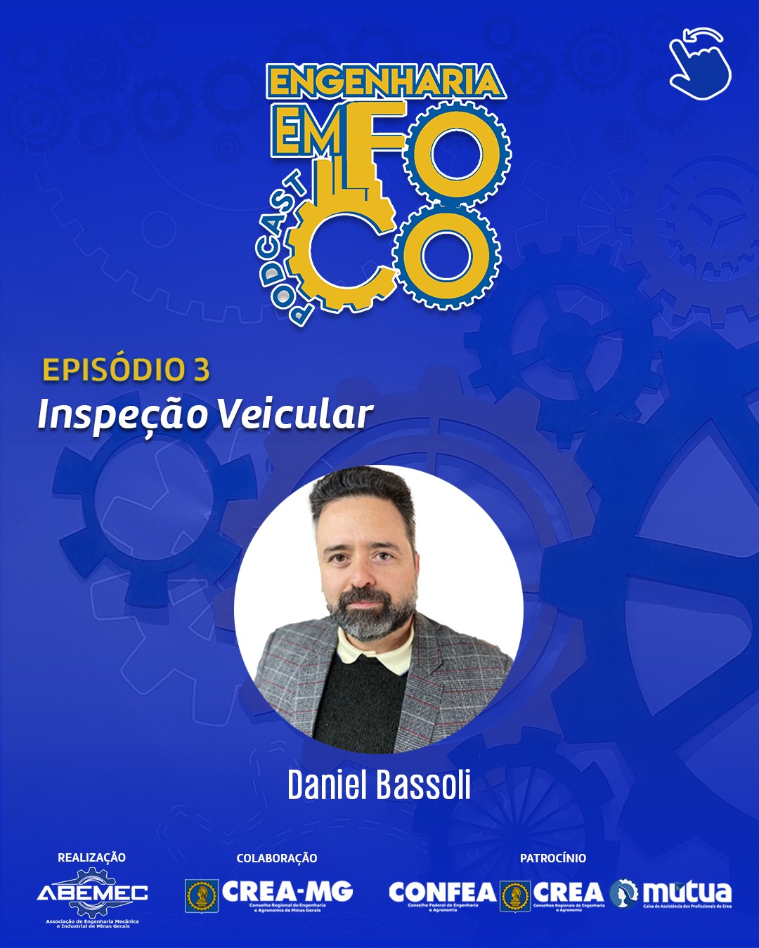 🎙️ PODCAST ENGENHARIA EM FOCO | EPISÓDIO 3 🏗️A ABEMEC-MG, com a colaboração do CREA-MG e o patrocínio do Sistema CONFEA/CREA/MÚTUA, lança o Episódio 3 do Podcast ENGENHARIA EM FOCO, um novo espaço de diálogo técnico, atual e estratégico sobre os temas que estão no centro das decisões da Engenharia e do Avanço Tecnológico. Tema do Episódio:Inspeção Veicular.Um assunto extremamente atual, essencial para a segurança, conformidade legal e gestão responsável dos veículos escolares. ️.👥 Convidado de excelência: Daniel Bassoli – Possui graduação em Engenharia Mecânica pelo Centro Federal de Educação Tecnológica de Minas Gerais (2002). Experiência na área de Engenharia Mecânica, com ênfase em Inspeção veicular e perícias. Analista sênior na FIAT Automóveis entre 2001 e 2009. Coordenador de planejamento de engenharia na FPT Powertrain Technologies entre 2009 e 2011. RT em organismo de inspeção veicular entre 2011 e 2013. Um episódio imperdível para engenheiros, gestores públicos, peritos, estudantes e profissionais do setor automobilístico, que desejam se manter atualizados, informados e preparados para as exigências técnicas e legais do mercado . Assista on-line no canal da ABEMEC-MG no YouTube: youtube.com/@abemecmg Acesse o Episódio 3 pelo link disponível na BIO do Instagram da ABEMEC-MGENGENHARIA EM FOCO: informação qualificada, debate de alto nível e conhecimento aplicado à realidade profissional. 🎙️