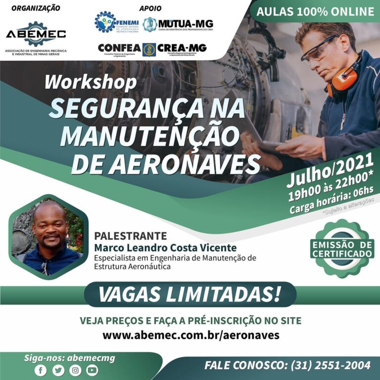 Dando continuidade ao projeto de promoção de informação e conhecimento para engenheiros e estudantes de engenharia, a ABEMEC-MG está lançando o Workshop de Segurança em Manutenção de Aeronaves. Visite o site abemec.com.br/aeronaves e saiba mais!