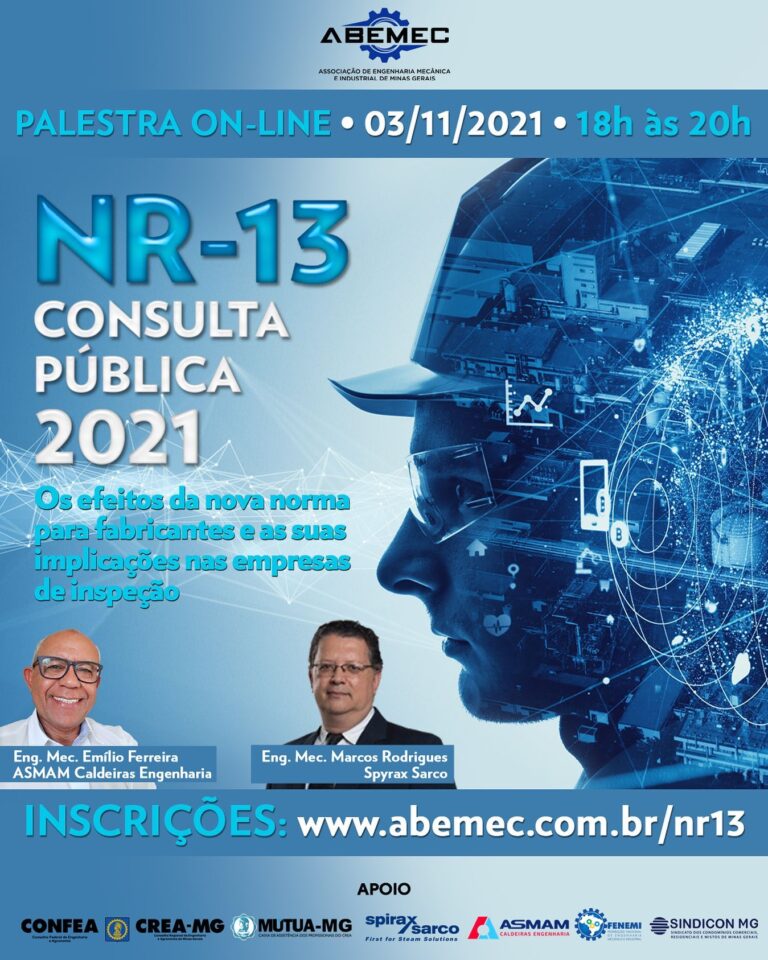 É HOJE! Dando continuidade às lives de NR-13. FAÇA SUA INSCRIÇÃO: www.abemec.com.br/nr13