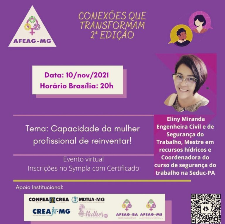 2a Edição do “CONEXÕES QUE TRANSFORMAM”. Palestra no próximo dia 10/11/2021. Faça logo a sua inscrição! Acesse o Sympla da AFEAG-MG!