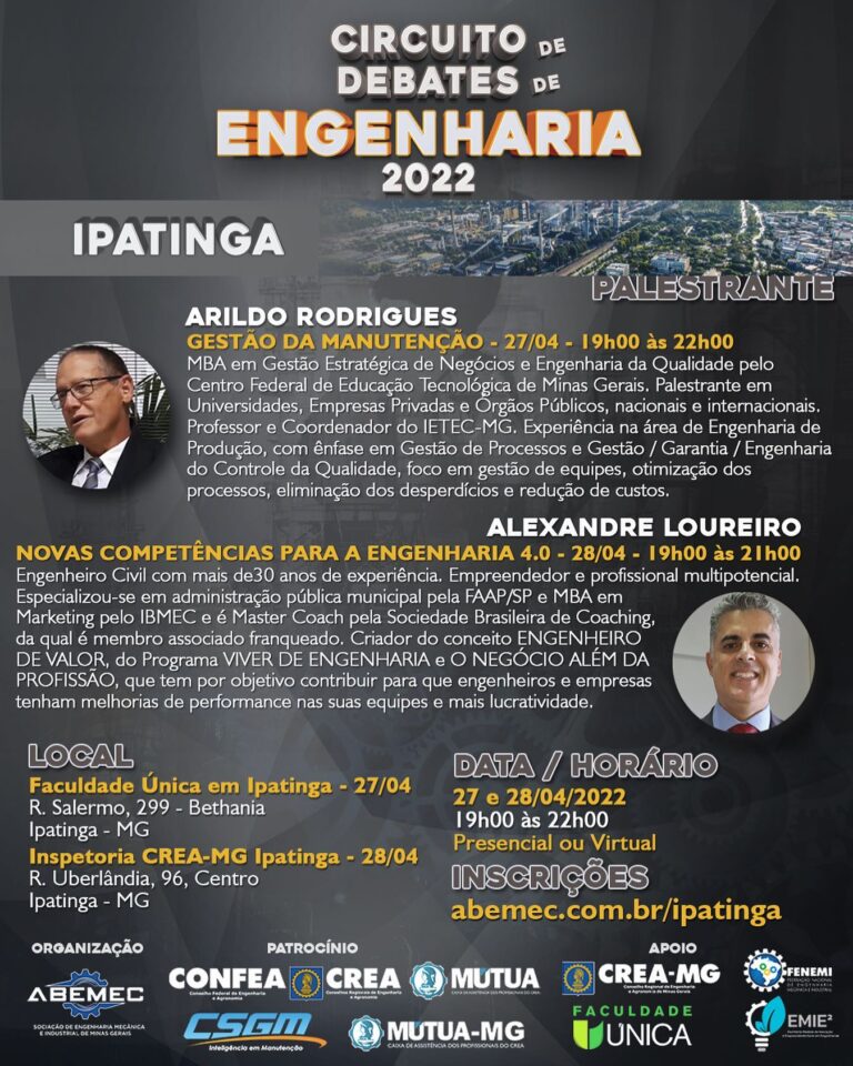 - EPISÓDIO 12 NO AR | PODCAST ENGENHARIA EM FOCO A segurança começa com informação de qualidade. No Episódio 12 do Podcast ENGENHARIA EM FOCO, a ABEMEC-MG, com a colaboração do CREA-MG e o patrocínio do Sistema CONFEA/CREA/MÚTUA, promove um debate técnico, atual e essencial sobre Prevenção e Combate ao Incêndio em Condomínios .Em um cenário de crescente verticalização e maior responsabilidade técnica, o episódio aborda normas, boas práticas, fiscalização, responsabilidades legais e estratégias eficazes para reduzir riscos e salvar vidas .🎙️ Convidados especialistas de alto nível: Tenente Manoel de Jesus Braga (CBMMG) – Instrutor da Academia de Bombeiros Militar, especialista em Perícia de Incêndios e Explosões, com sólida formação em prevenção, gestão de catástrofes e segurança. Capitão Evandro Maroni Mascarenhas (CBMMG) – Profissional com ampla experiência em Segurança Contra Incêndio, unindo visão técnica e gestão em segurança pública. João Vítor da Silva – Engenheiro de Automação e Controle, Engenheiro de Segurança do Trabalho, Coordenador Estadual do Colégio de Inspetores do CREA-MG e Diretor Técnico da GST Ocupacional, trazendo a visão da engenharia aplicada à proteção de pessoas e patrimônios. Um episódio indispensável para engenheiros, síndicos, gestores condominiais, profissionais de segurança e todos que atuam com edificações. Assista agora no canal oficial da ABEMEC-MG no YouTube: youtube.com/@abemecmg O link de acesso ao episódio está na BIO do Instagram da ABEMEC-MG. Informação técnica salva vidas. Não perca!
