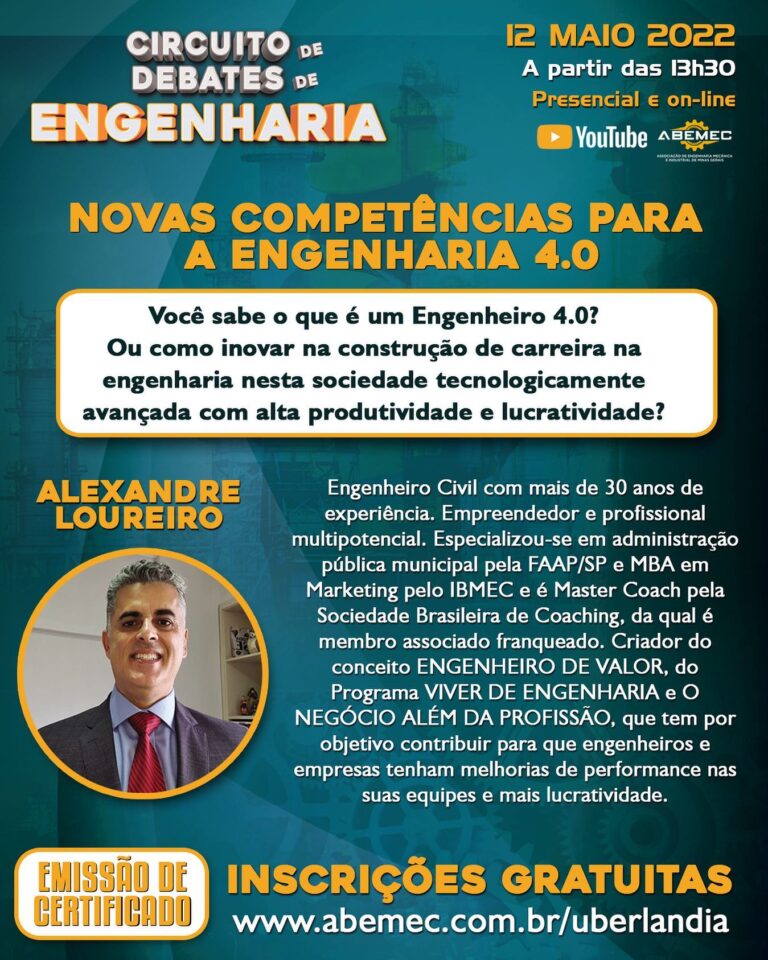 Faça já a sua inscrição! É gratuita! Palestra presencial ou on-line! Emissão de certificado. Acesse: abemec.com.br/uberlandia