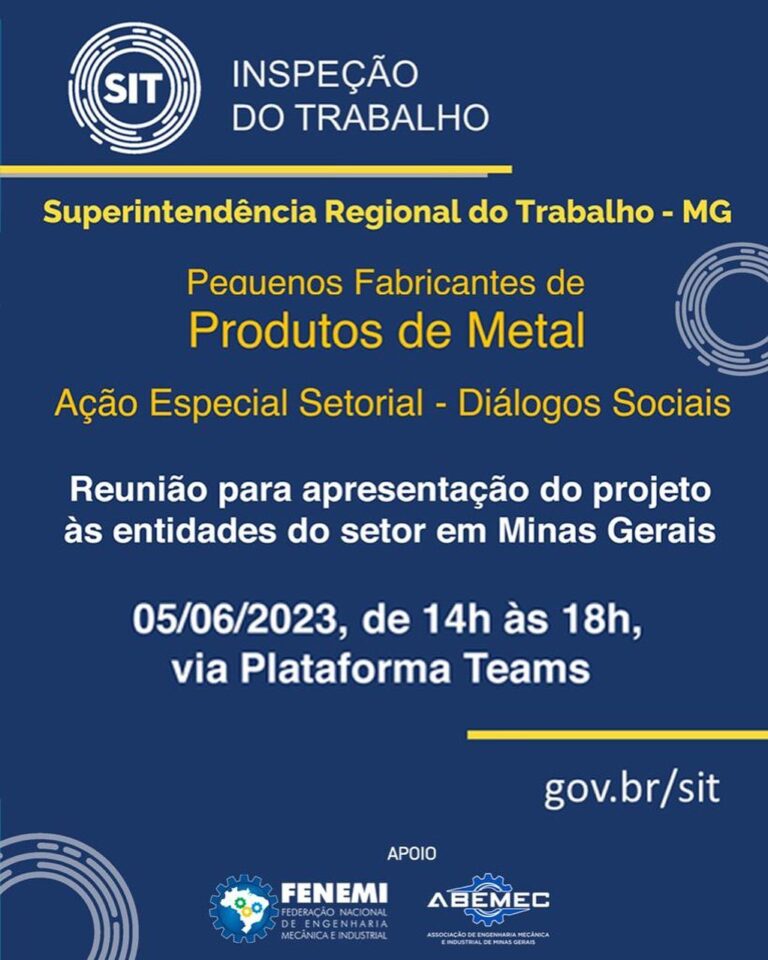 É hoje! Live com a Superintendência Regional do Trabalho de Minas Gerais para apresentação de propostas para entidades do setor industrial. ACESSE: gov.br/sit