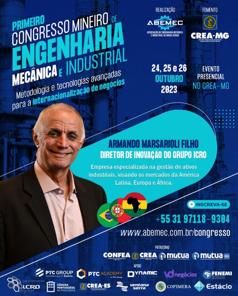 Vem aí o 1° Congresso Mineiro de Engenharia Mecânica e Industrial! ⠀ Em um mundo cada vez mais conectado, a internacionalização de negócios é uma jornada que exige excelência em gestão, liderança e inovação. Este evento, dedicado à engenharia e seus profissionais, está focado em explorar as tecnologias mais avançadas e as metodologias mais eficazes para impulsionar a expansão internacional das empresas. ⠀A busca pela excelência em gestão e liderança de negócios de engenharia é a base para o desenvolvimento de ferramentas inovadoras que constroem diferenciais competitivos sólidos.Pensando nisso, os palestrantes de destaque neste Congresso compartilharão insights sobre como liderar o mercado, estrategicamente gerenciar processos e alcançar resultados mensuráveis e impactantes. Um desses convidados será o Diretor de Inovação do ICRO Group Armando Marsarioli.Acesse abemec.com.br/congresso e saiba mais sobre o evento.