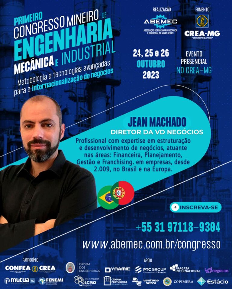 Vem aí o 1° Congresso Mineiro de Engenharia Mecânica e Industrial! Em um mundo cada vez mais conectado, a internacionalização de negócios é uma jornada que exige excelência em gestão, liderança e inovação. Este evento, dedicado à engenharia e seus profissionais, está focado em explorar as tecnologias mais avançadas e as metodologias mais eficazes para impulsionar a expansão internacional das empresas. A busca pela excelência em gestão e liderança de negócios de engenharia é a base para o desenvolvimento de ferramentas inovadoras que constroem diferenciais competitivos sólidos.Pensando nisso, os palestrantes de destaque neste Congresso compartilharão insights sobre como liderar o mercado, estrategicamente gerenciar processos e alcançar resultados mensuráveis e impactantes. Um desses convidados é Jean Machado, CEO da VD Negócios, com atuação em Portugal e no Brasil.🌎 Acesse abemec.com.br/congresso e saiba mais sobre o evento.