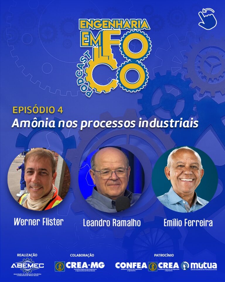 🎙️ PODCAST ENGENHARIA EM FOCO – EPISÓDIO 4🔬 Amônia nos Processos IndustriaisA ABEMEC-MG apresenta mais um episódio imperdível do Podcast ENGENHARIA EM FOCO, realizado com a colaboração do CREA-MG e o patrocínio do Sistema CONFEA/CREA/MÚTUA. ⚙️️️A amônia é amplamente aplicada em sistemas de refrigeração, processos industriais e energéticos, mas exige alto nível de conhecimento técnico, rigor normativo e práticas seguras de operação e manutenção. Convidados do Episódio 4: Werner FlisterTecnólogo em Fabricação Mecânica (FATEC-SP), Técnico em Eletrônica, membro do Comitê de Estudo ABNT/CEE-168. Atua com manutenção, operação, projetos, treinamentos e segurança com amônia desde 1999, integrando a Amonex do Brasil desde 2006. Instrutor em Manuseio e Segurança com Amônia há mais de 25 anos.♂️ Leandro Ramalho França SilvaAuditor Fiscal do Trabalho da SRTE/MG, Instrutor do Ministério do Trabalho em NR-12, Engenheiro Civil e de Segurança do Trabalho. Atuou no grupo especial de implantação da Fiscalização Móvel, participando da primeira operação do GEFM, referência nacional na erradicação do trabalho análogo à escravidão.⚙️ Luiz Emílio FerreiraEngenheiro Mecânico com 38 anos de atuação profissional, sendo 17 anos dedicados à manutenção industrial pesada, máquinas térmicas, sistemas de vapor e vasos de pressão. Sócio-fundador da ASMAM Caldeiras, empresa especializada em projetos, fabricação e manutenção de caldeiras, vasos de pressão e sistemas de vapor.️ Assista agora ao Episódio 4 do Podcast ENGENHARIA EM FOCO O link de acesso está disponível na BIO do Instagram da ABEMEC-MG Conteúdo publicado no canal oficial da ABEMEC-MG no YouTube: youtube.com/@abemecmg- [ ] Conhecimento técnico que fortalece a engenharia e valoriza a atuação profissional. Não perca!