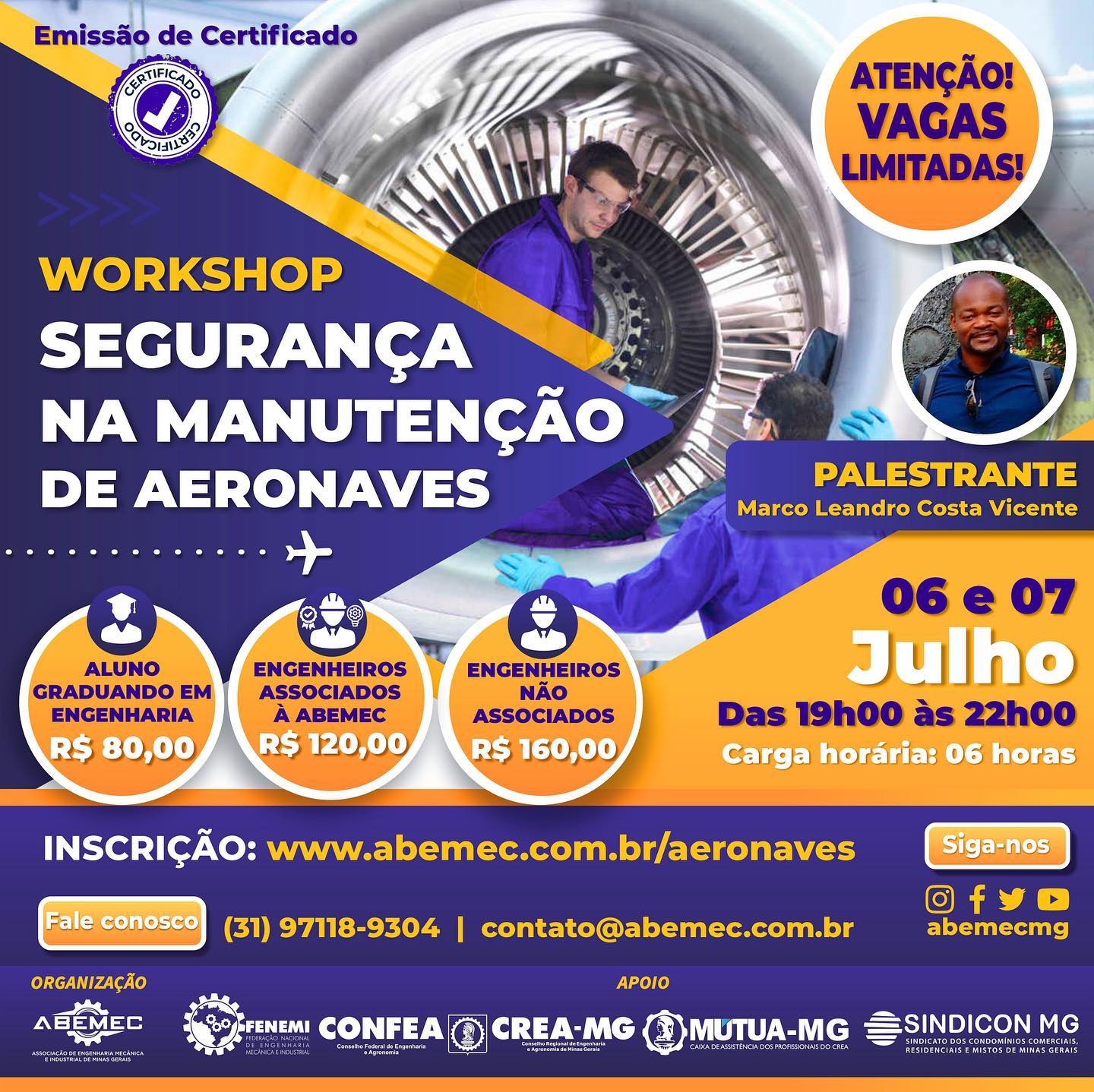 - Anterior Dando continuidade ao projeto de promoção de informação e conhecimento para engenheiros e estudantes de engenharia, a ABEMEC-MG está lançando o Workshop de Segurança em Manutenção de Aeronaves. Visite o site abemec.com.br/aeronaves e saiba mais!
