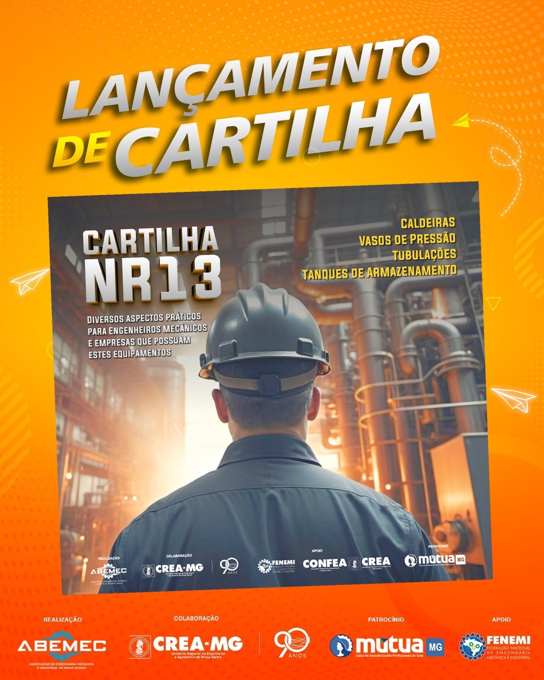 Baixe a nova "Cartilha NR13" no portal da ABEMEC-MG. Uma publicação que conta com a COLABORAÇÃO do Crea-MG.