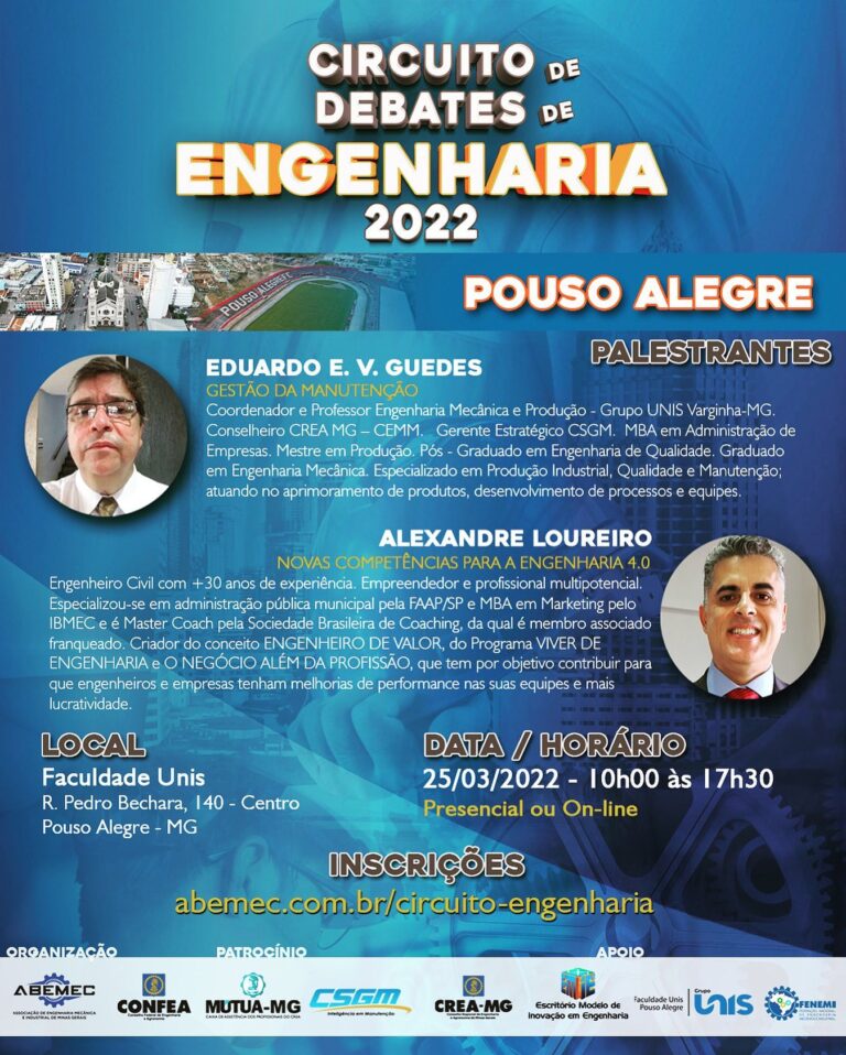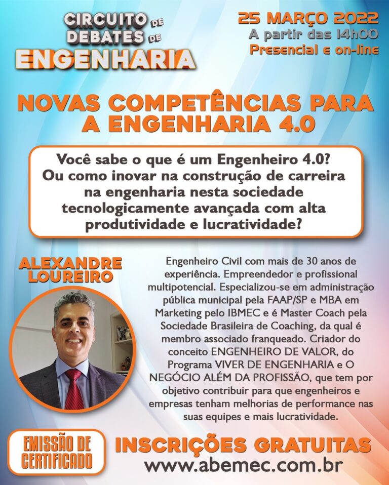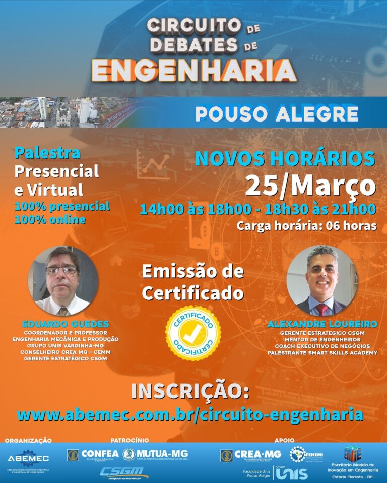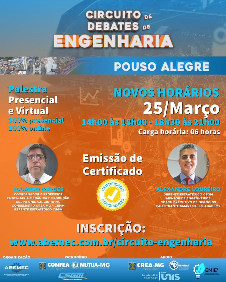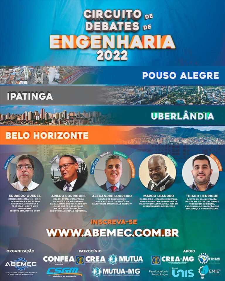 CIRCUITO DE DEBATES DE ENGENHARIA – ABEMEC-MG está lançando seu novo projeto de fomento aos conhecimentos da engenharia através de palestras e debates no cenário mineiro! ACESSE: abemec.com.br/circuito-engenharia