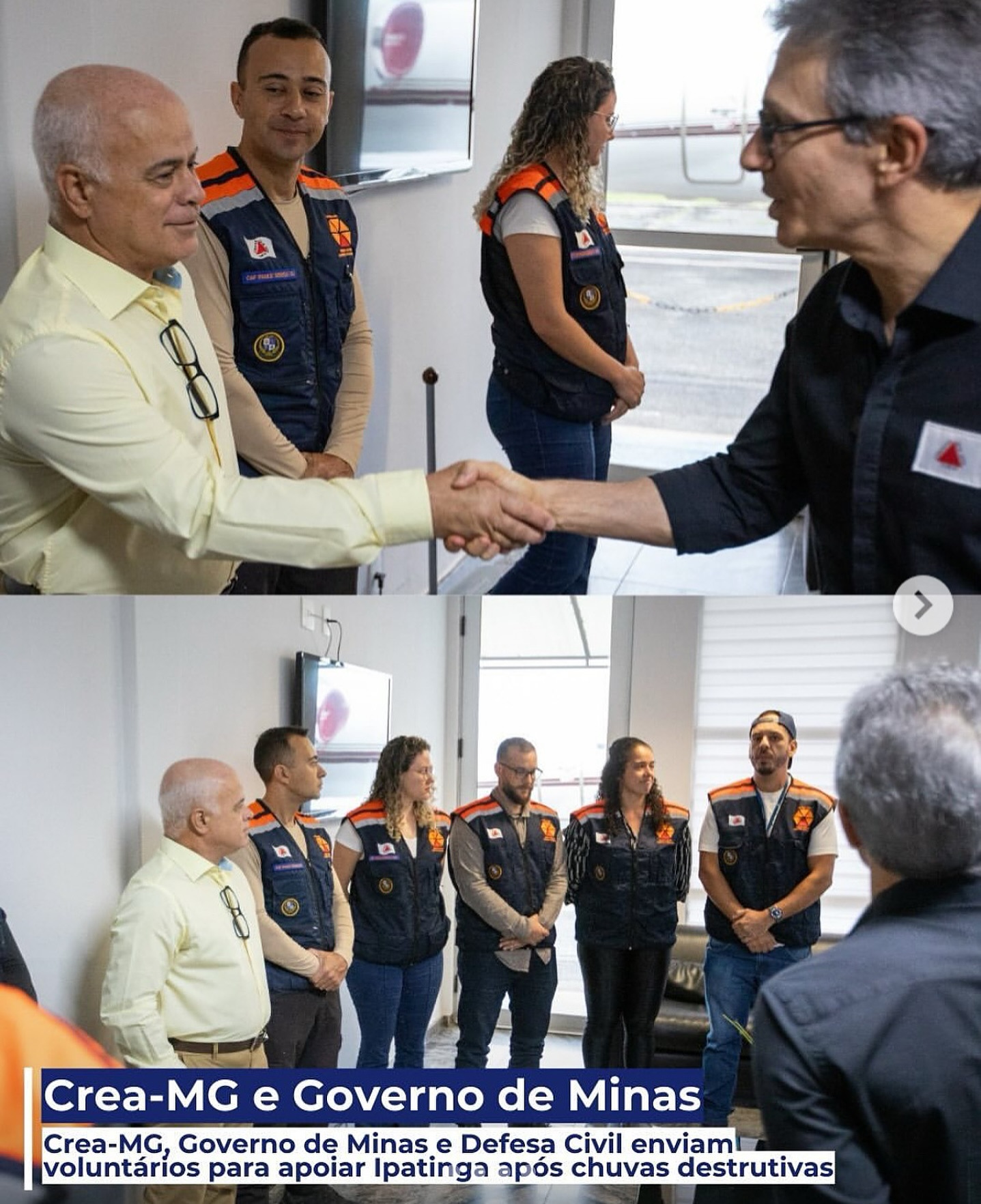 Engenheiros e geólogos voluntários que atuarão na cidade de Ipatinga embarcaram, na manhã desta quarta-feira (15), para o município do Vale do Aço. O Crea-MG enviou cinco profissionais que vão reforçar as ações de vistoria de imóveis, dando suporte às equipes da Defesa Civil Estadual.Embarcaram para o município o engenheiro de minas e de segurança do trabalho Jeffiter Oliveira, a geóloga Priscila Diniz e o engenheiro geólogo Gabriel Alvez. Os três se unem aos outros dois voluntários, engenheiro civil Theilon dos Santos e engenheiro civil NeubertOliveira, que já estão na cidade.A cidade tem enfrentado graves consequências causadas pelas fortes chuvas, que resultaram em mortes, centenas de desabrigados e milhares de desalojados.@confea_@crea_minas @mutuadeassistencia@mutua.mg @qualificar_creaminas @eng.lucioborges@eng.marcosgervasio#confea #crea #creamg #creaminas #mutua #mutuamg #engenheiro #agronomo #geologo #geografo #engenharia #agronomia #geociencias