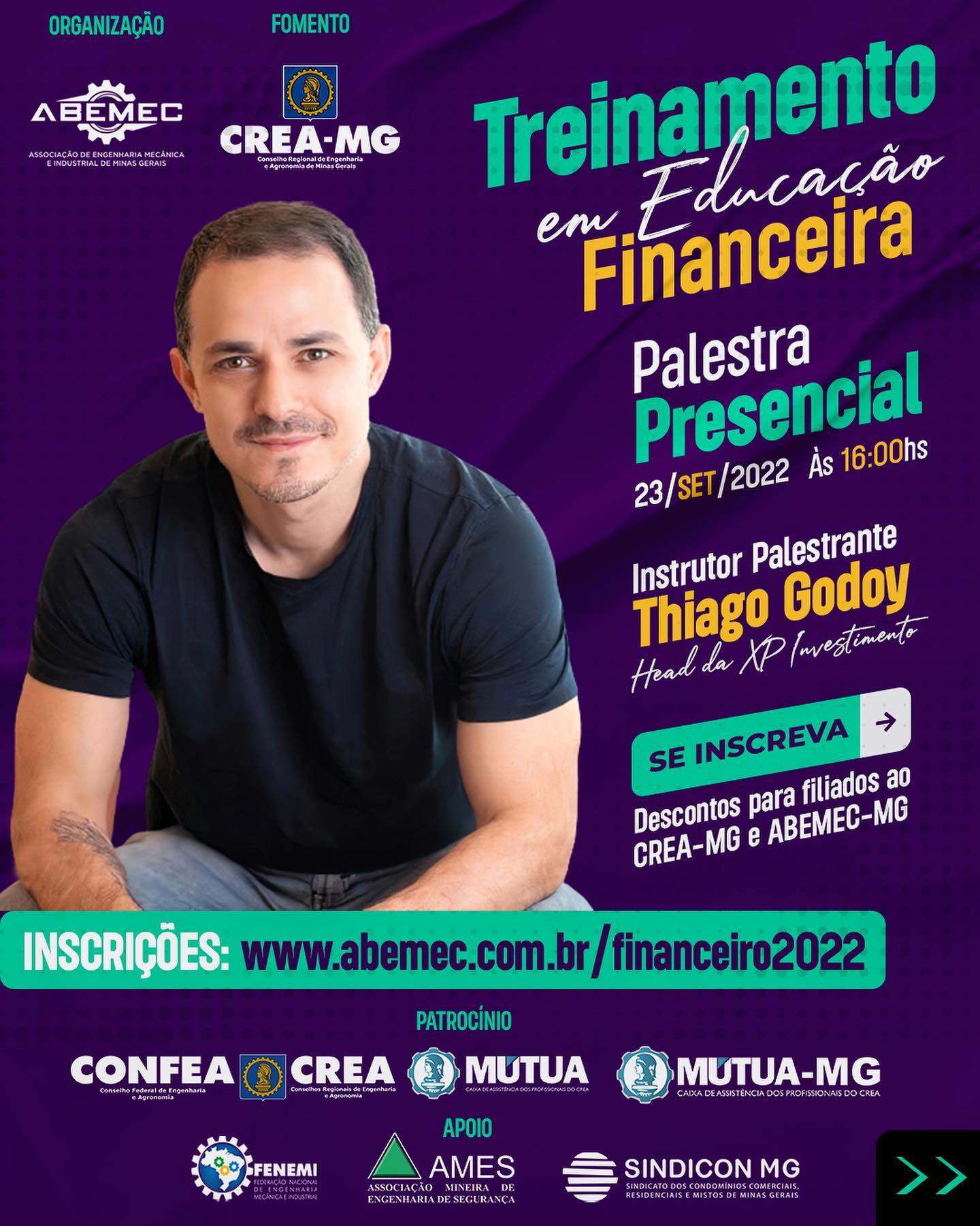 IMPERDÍVEL!! Curso de Finanças e Treinamento em investimentos pessoais com Head da XP Investimentos Thiago Godoy. Faça logo a sua inscrição! ACESSE: www.abemec.com.br/financeiro2022 #abemecmg