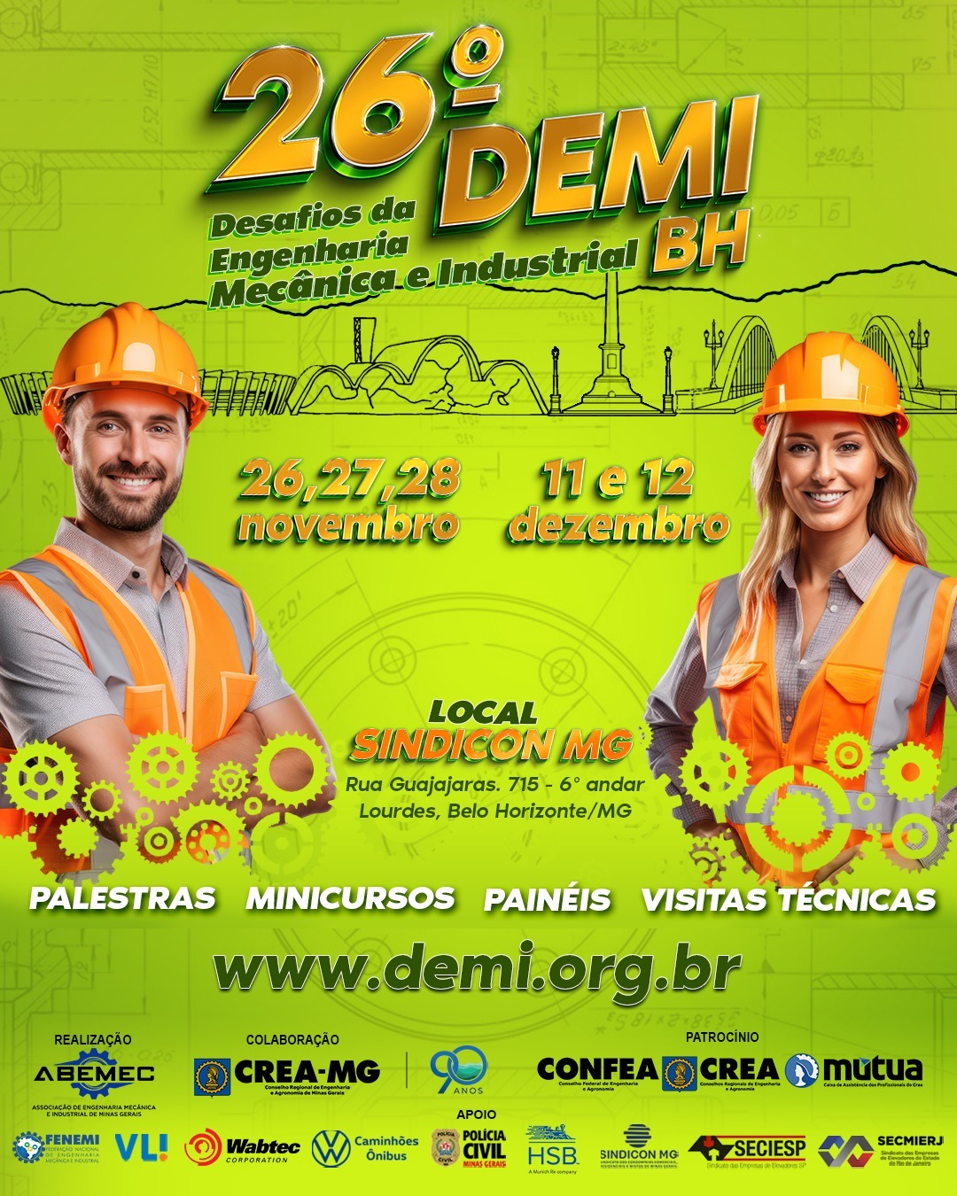 INSCRIÇÕES GRATUITAS ABERTAS!!O 26º DEMI Desafios da Engenharia Mecânica e Industrial é um evento organizado para colocar você profissional da Engenharia frente a frente com empresas de ponta e profissionais que ocupando cargos estratégicos nessas empresas, poderão compartilhar conhecimentos, experiências e vivências estimuladoras para você que busca evoluir profissionalmente.A atual era de inovação tecnológica em que estamos inseridos destaca a importância de atualizar os conhecimentos técnicos e de relacionamentos, sendo crucial para impulsionar a sua trajetória profissional.As competências fundamentais para o despontamento de um profissional no competitivo mercado corporativo atual incluem fortes habilidade em gestão, liderança e inovação.⚙️ Este evento, voltado para a engenharia e seus profissionais, tem como objetivo apresentar as inovações, tecnologias mais recentes e as metodologias mais eficientes para aumentar os diferenciais estratégicos e a competitividade das organizações. O foco na excelência tecnológica, na gestão estratégica dos colaboradores e do relacionamento com os parceiros e liderança de empresas de engenharia é o alicerce para a criação de ferramentas inovadoras que estabelecem diferenciais competitivos robustos.🏅Nossos palestrantes de renome oferecerão perspectivas sobre como liderar o mercado, gerir processos de forma estratégica e obter resultados quantificáveis e significativos.INSCREVA-SE GRATUITAMENTE:🌐www.demi.org.br