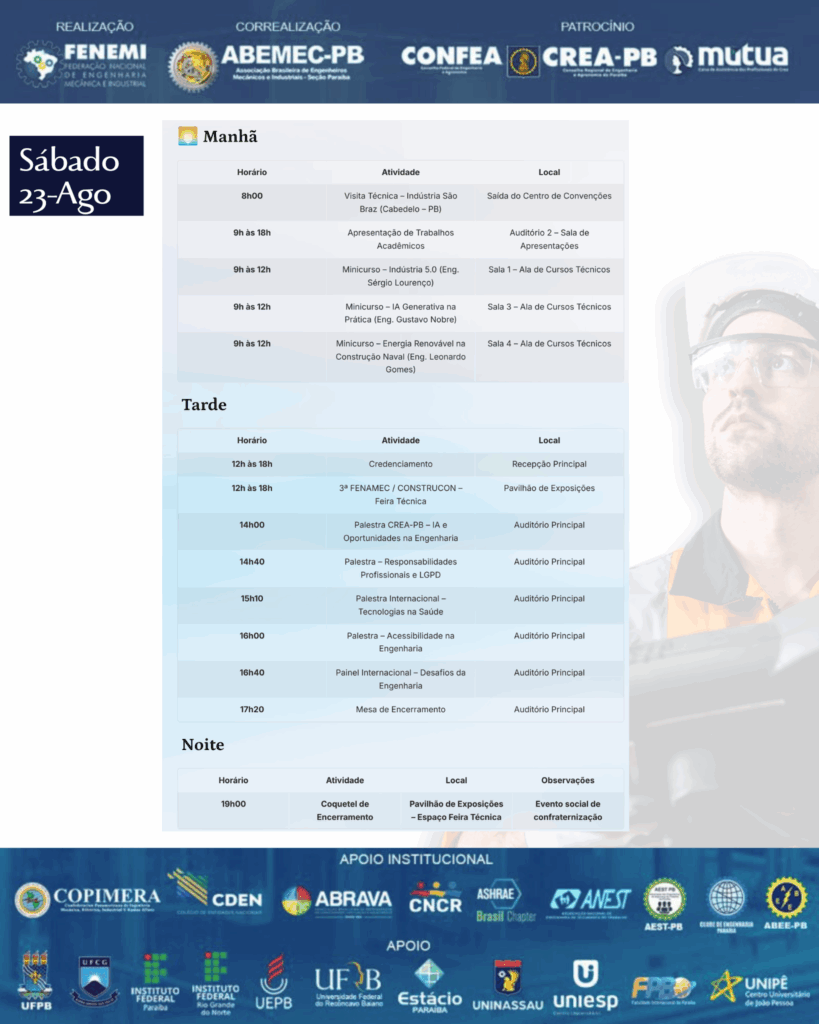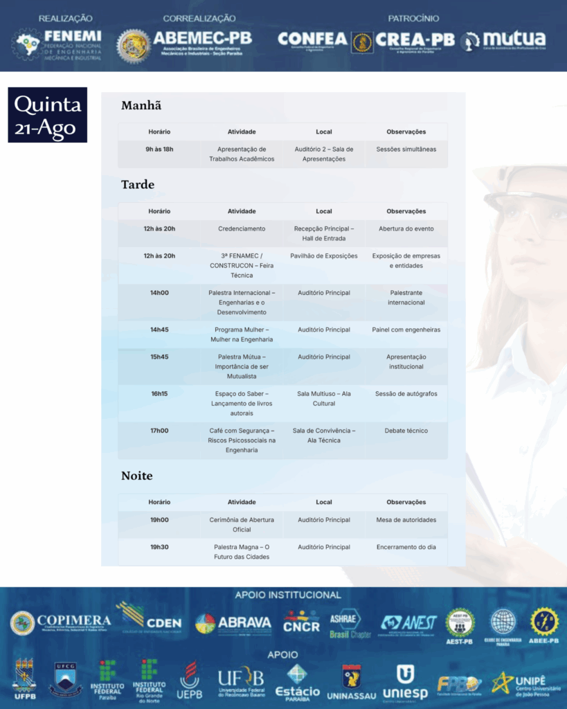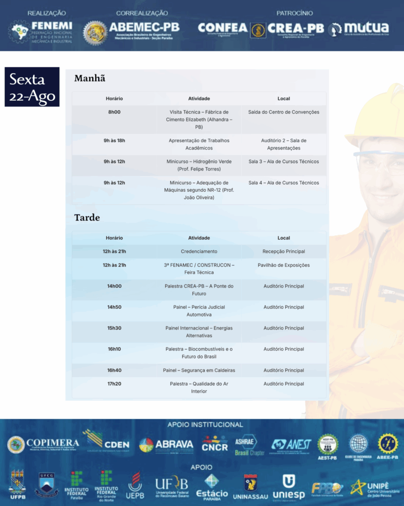 - Vem aí o 28º DEMI – Desafios da Engenharia Mecânica e Industrial! ⚙️O encontro definitivo para quem respira inovação, tecnologia e o futuro da engenharia!PALESTRANTE: Antonio Geraldo da Silva, Presidente do SINGEO-MG Sindicato dos Geólogos de Minas Gerais. ⚙️Engenheiro Geólogo formado pela tradicional Escola de Minas de Ouro Preto (1973), com especialização em Engenharia Geotécnica pelo INBEC/Universidade de São Paulo (2013–2015). Com mais de 45 anos de experiência, atuou em importantes empresas do setor mineral e geotécnico, como Embraminer, Geosol, Magnesita, Mineração Acaba Mundo, Casa de Pedra, Mineração Morro Velho (Vale) e em projetos geotécnicos da Prefeitura de Belo Horizonte. ⚙️Realizado pela ABEMEC-MG, com o patrocínio do CONFEA, CREA-MG e MÚTUA-MG, o DEMI chega à sua 28ª edição nos dias 12 e 13 de dezembro reunindo profissionais, estudantes e especialistas para dois dias intensos de conhecimento, networking e inspiração. O que você vai encontrar no 28º DEMI?Palestras técnicas de alto impacto com temas atuais da Engenharia Mecânica e Industrial 🧠⚙️Debates sobre inovação, automação e avanços tecnológicos que estão moldando o futuro da profissão 🤖Insights exclusivos com profissionais renomados do setor Um ambiente dinâmico para ampliar sua rede de contatos e oportunidades 🤝 Por que participar?Porque o DEMI é o espaço onde ideias ganham força, projetos encontram caminhos e carreiras se transformam. Um evento feito por engenheiros, para engenheiros — e para todos que querem estar na linha de frente da evolução tecnológica. 🌍 Marque na agenda: 12 e 13 de dezembro Prepare-se para viver uma experiência única na engenharia!🌐 Inscrições poderão ser feitas no: www.demi.org.brNão fique de fora! Sua próxima grande inspiração pode nascer aqui. ⚙️