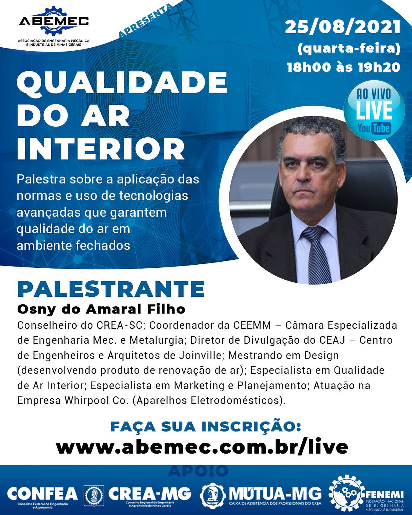 LIVE sobre QUALIDADE DO AR INTERNO em função do lançamento da nova cartilha da ABEMEC-MG. Se inscreva: abemec.com.br/live