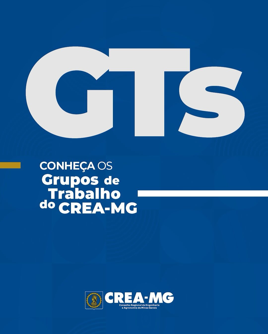 O Crea-MG conta com diversos Grupos de Trabalho (GTs) voltados para temas estratégicos como sustentabilidade, inovação, inteligência artificial, cidades inteligentes, prevenção de desastres e muito mais.Esses grupos reúnem especialistas para elaborar estudos e propostas que fortalecem a atuação do Conselho e contribuem para o desenvolvimento da sociedade.Arraste para o lado e conheça os GTs de 2025 e acompanhe suas atividades pelos canais do Crea-MG.