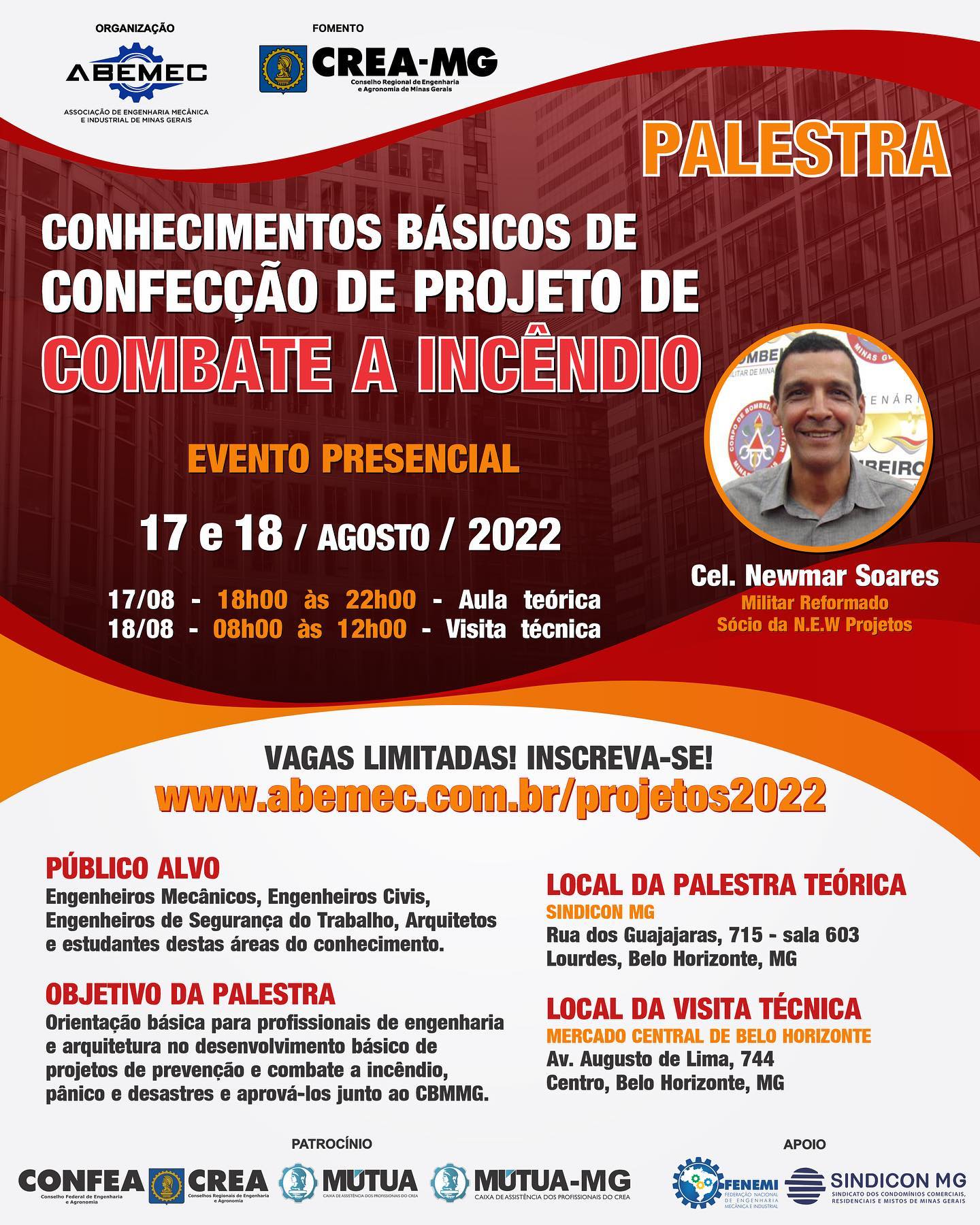 Palestra gratuita sobre elaboração de Projetos de Prevenção e Combate ao Incêndio com o Coronel Reformado Newmar Soares Faça a sua inscrição pois as vagas são limitadas!! ACESSE: www.abemec.com.br/projetos2022 #abemecmg
