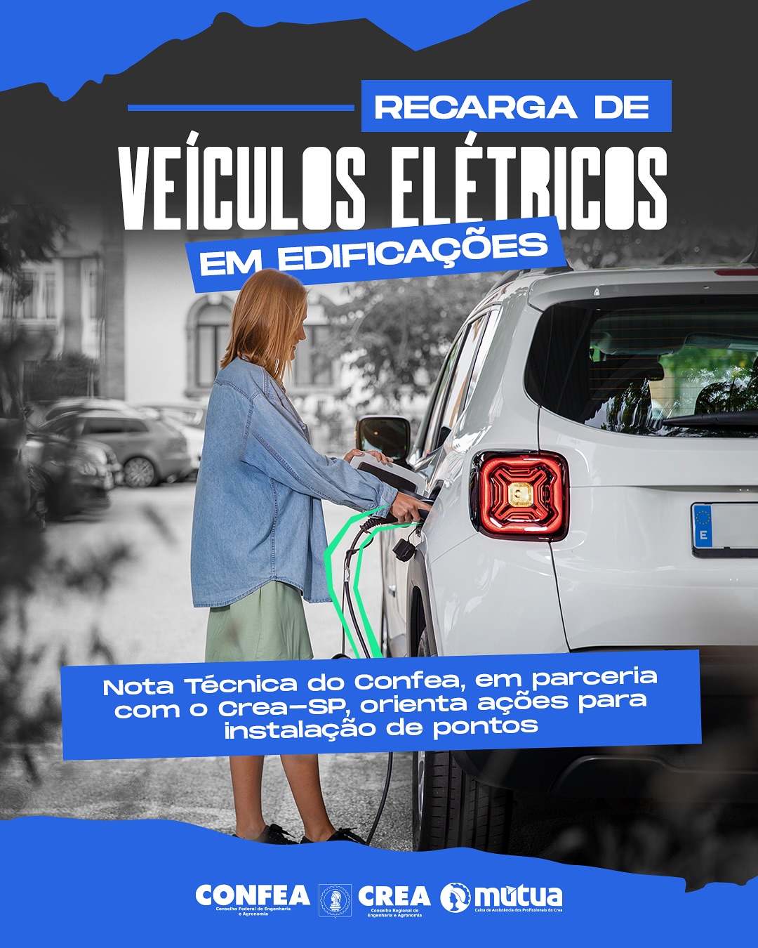Recarga de veículos elétricos com segurança e responsabilidade técnica!O Confea, em parceria com o Crea-SP, elaborou uma Nota Técnica que orienta as melhores práticas para a instalação de pontos de recarga em edificações. Essa é uma necessidade cada vez mais presente com o avanço da eletromobilidade no Brasil e no mundo.O documento traz recomendações sobre dimensionamento das instalações elétricas, mitigação de riscos de incêndio, uso de materiais adequados, exigência de ART e a importância de profissionais habilitados na execução dos serviços.Mais do que um avanço tecnológico, é uma ação que une sustentabilidade, inovação e segurança, com o protagonismo dos profissionais da engenharia. Confira a nota na íntegra em confea.org.br.