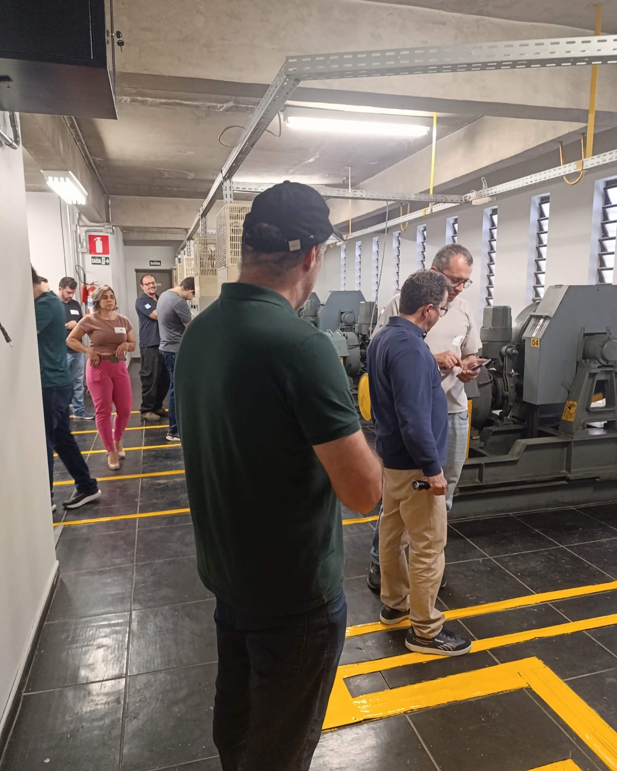 Visita técnica à casa de máquinas dos elevadores durante o Treinamento em Elevadores para Peritos da Polícia Federal e Civil do estado de Minas Gerais.